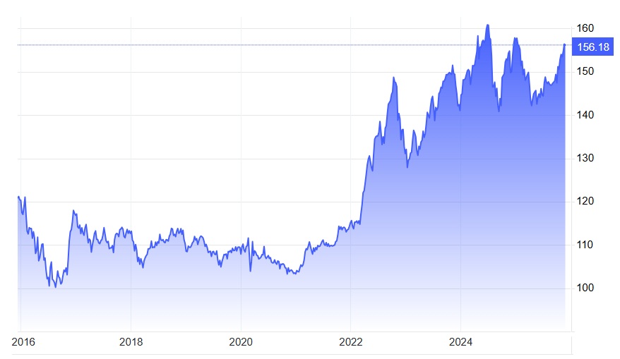 Early signs reflect rising unease in the Japanese markets. These worries are mirrored by rising Japanese government bond yields. Recently, the yield on benchmark 10-year JGBs hit 1.835%, the highest since summer 2008. Similarly, the yen briefly softened to 157.90 against the dollar amid fiscal fears and receding expectations for an imminent BOJ rate hike.