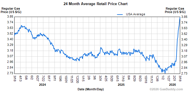 National Average Gasoline Price, Unleaded Regular, Last 24 Months