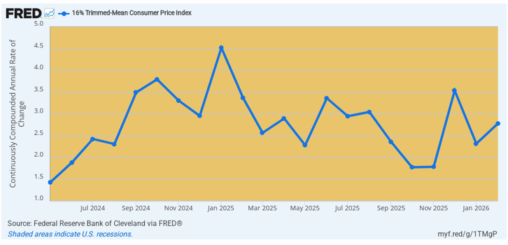 Annualized Change In 16% Trimmed Mean CPI, May 2024 to February 2026