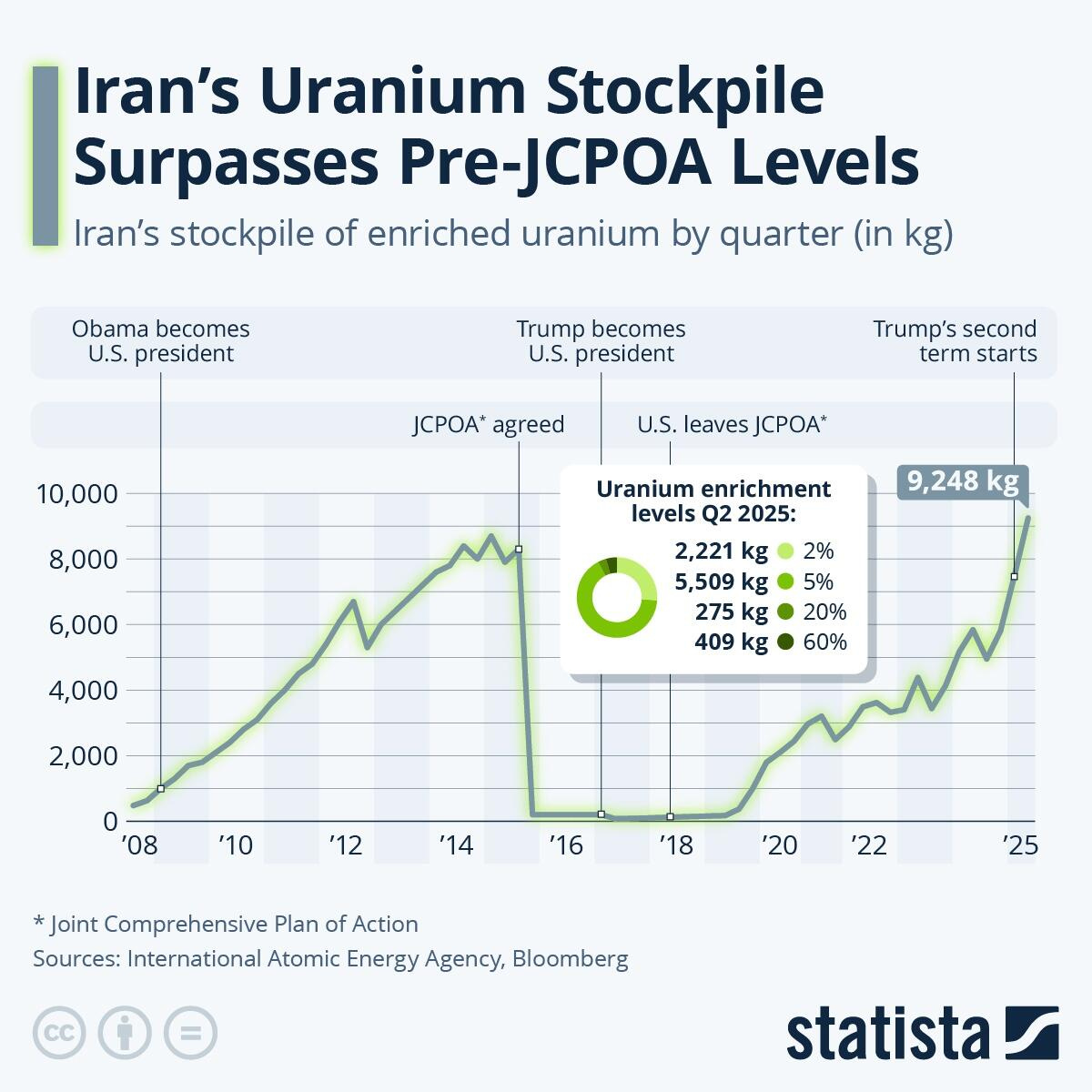 Stated differently, Obama negotiated the Iran enriched stockpile to down by about 97%, while the Donald bombed roughly the same level of stockpile from 9,000+ kilograms to, well @ 9,000 kilograms!