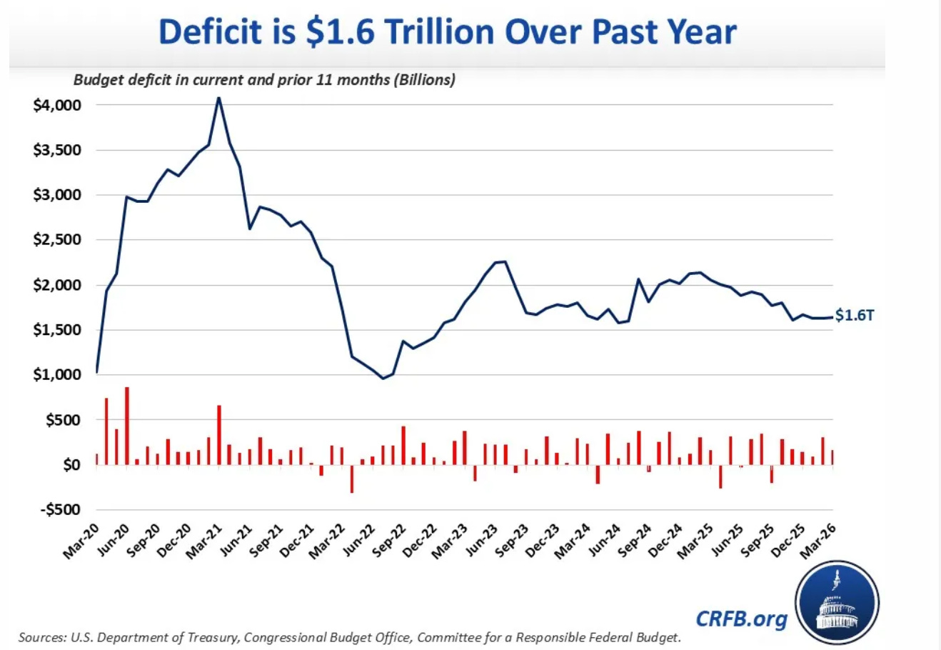 That should be no surprise. The Federal outlays level is about to explode owing to the Donald’s insane war on the Persian Gulf, which isn’t in a real sustainable “truce” by any way, shape or pause. This is just a “pause” that will soon break wide open again because there is no way to square the circle as between the Bibi/neocon quest to obliterate Iran as a functioning state and the latter’s evident unwillingness to submit to a suicidal surrender.