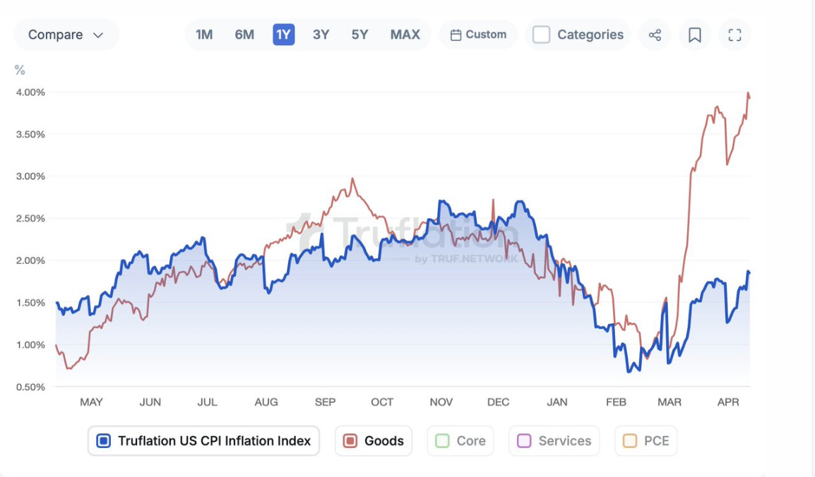 Indeed, the far more real time data from the Truflation index reminds clearly what is just around the corner. To wit, goods prices overall are already rising at a 4% annual rate, but the Persian Gulf supply shocks have barely yet entered the indices.