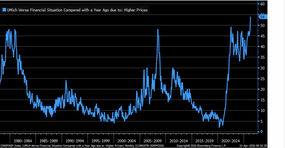 Alas, the American public may not be so dense. Already, consumer expectations of worsening inflationary impacts on their own personal finances are at the highest level in the last 56 year of the University of Michigan index shown below.