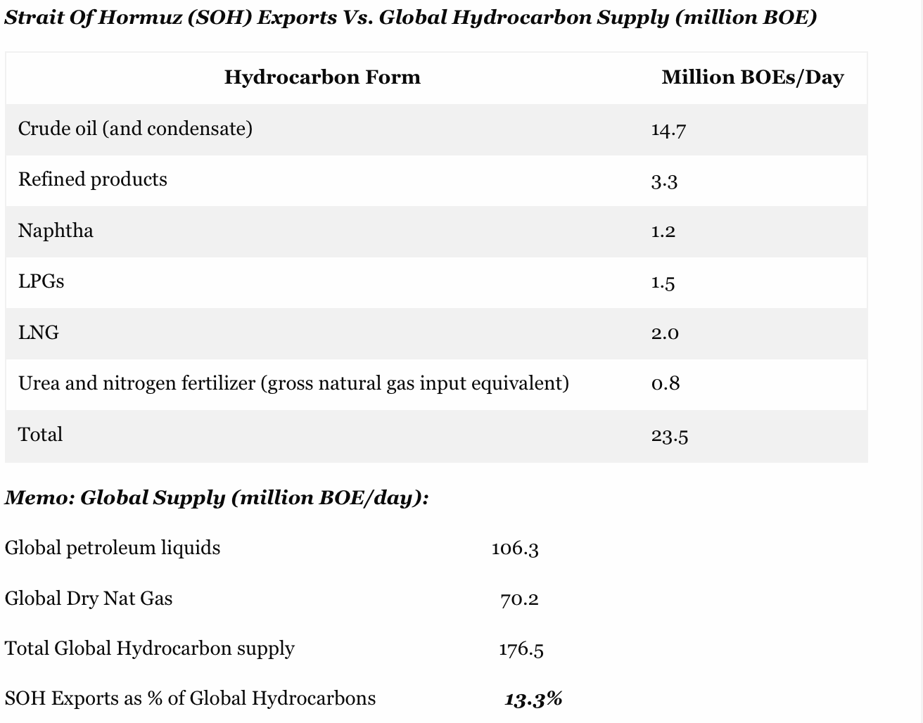 The baleful quantitative impact cannot be gainsaid. Normally, upwards of 24 million BOE/day (barrels of oil equivalent) of crude oil, refined products, LNG, LPGs, Naphtha, urea and nitrogen fertilizer are sent into export markets thru the SOH. And only a small part of that – about 2-3 million incremental barrels/day of Saudi crude – is now being re-routed to the Red Sea ports via the East/West pipeline. And even this workaround might be jeopardized soon if the Houthis close the Bab-El-Mandeb entrance to the Red Sea, as is now being threatened.