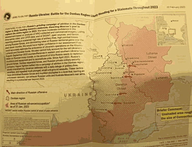 The documents also reveal serious deficiencies on the Russian side, deficiencies revealed by the failure of their winter offensive to take much ground. The fighting in Bakhmut has raged on for months, leaving thousands of fallen soldiers on both sides and a burned out city still not 100% controlled by Russia.